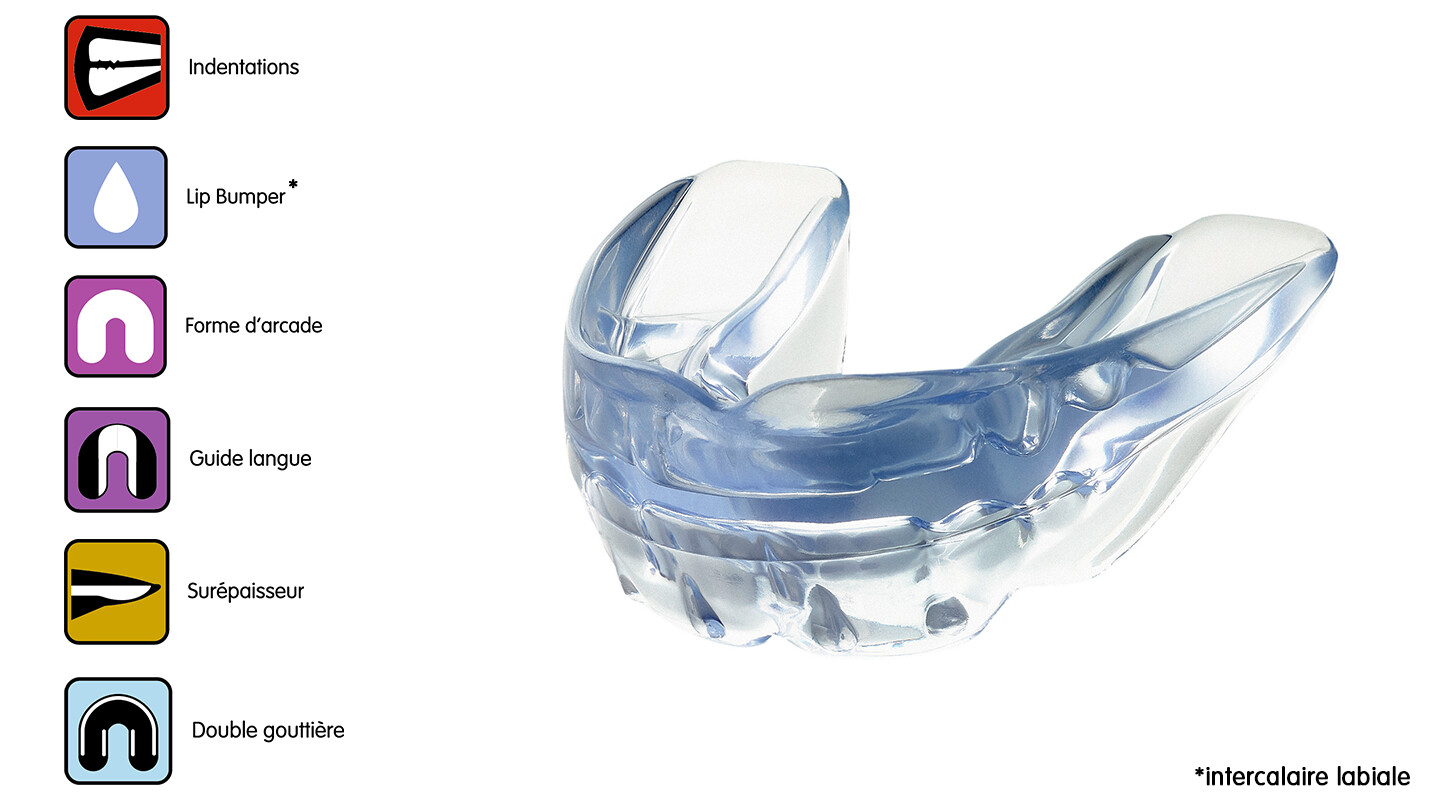 Ces gouttières agissent sur le positionnement dentaire en libérant le couloir dentaire, sur le positionnement lingual et la musculature labiale et sur la libération de la croissance mandibulaire par le déverrouillage des ATM (Articulations Temporo-Mandibulaires)